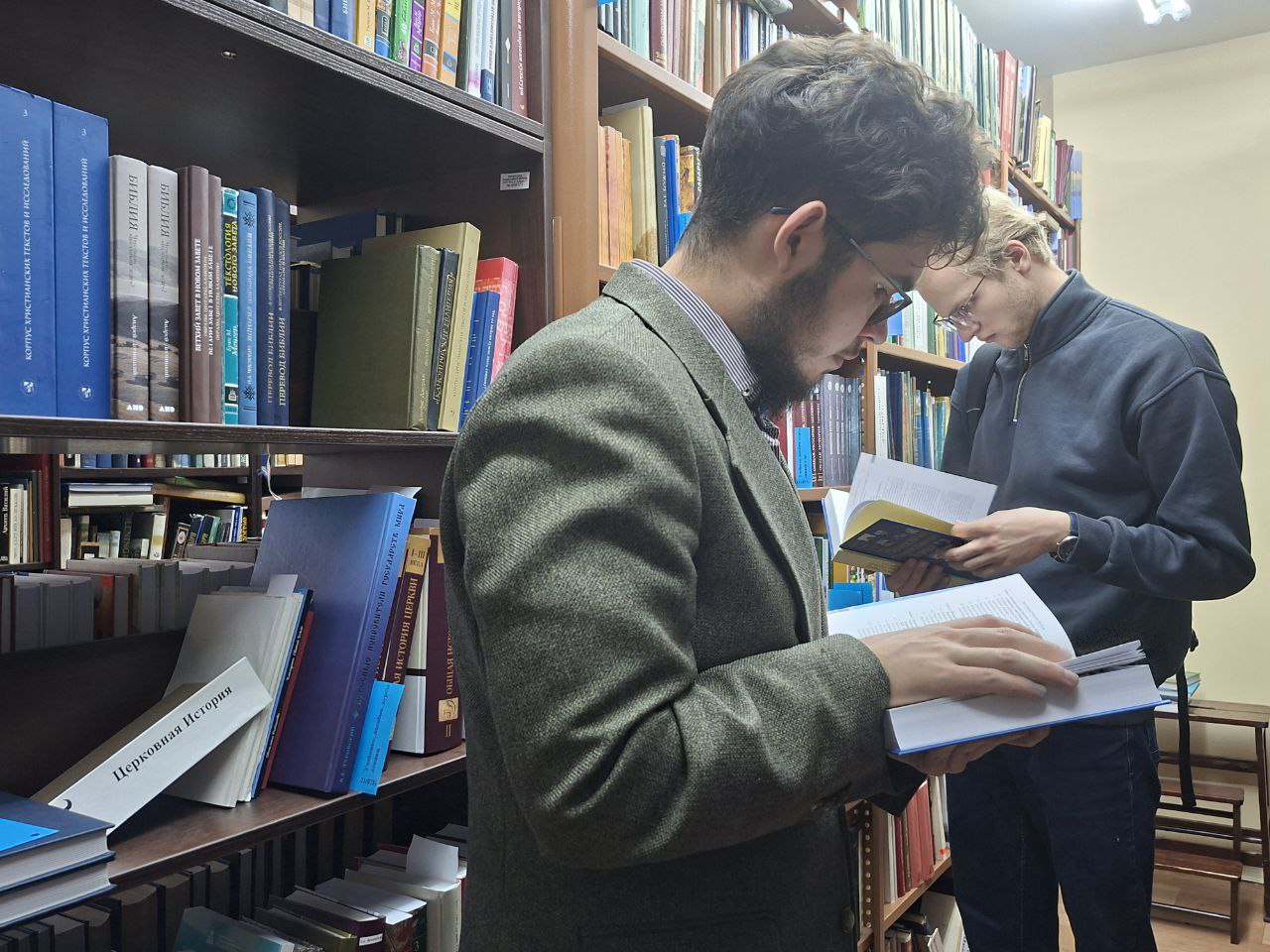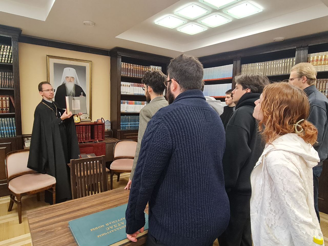 4 ноября 2025 года студенты ГУО «Институт теологии имени святых Мефодия и Кирилла Белорусского государственного университета» посетили библиотеку имени митрополита Филарета (Вахромеева) Минской духовной академии.