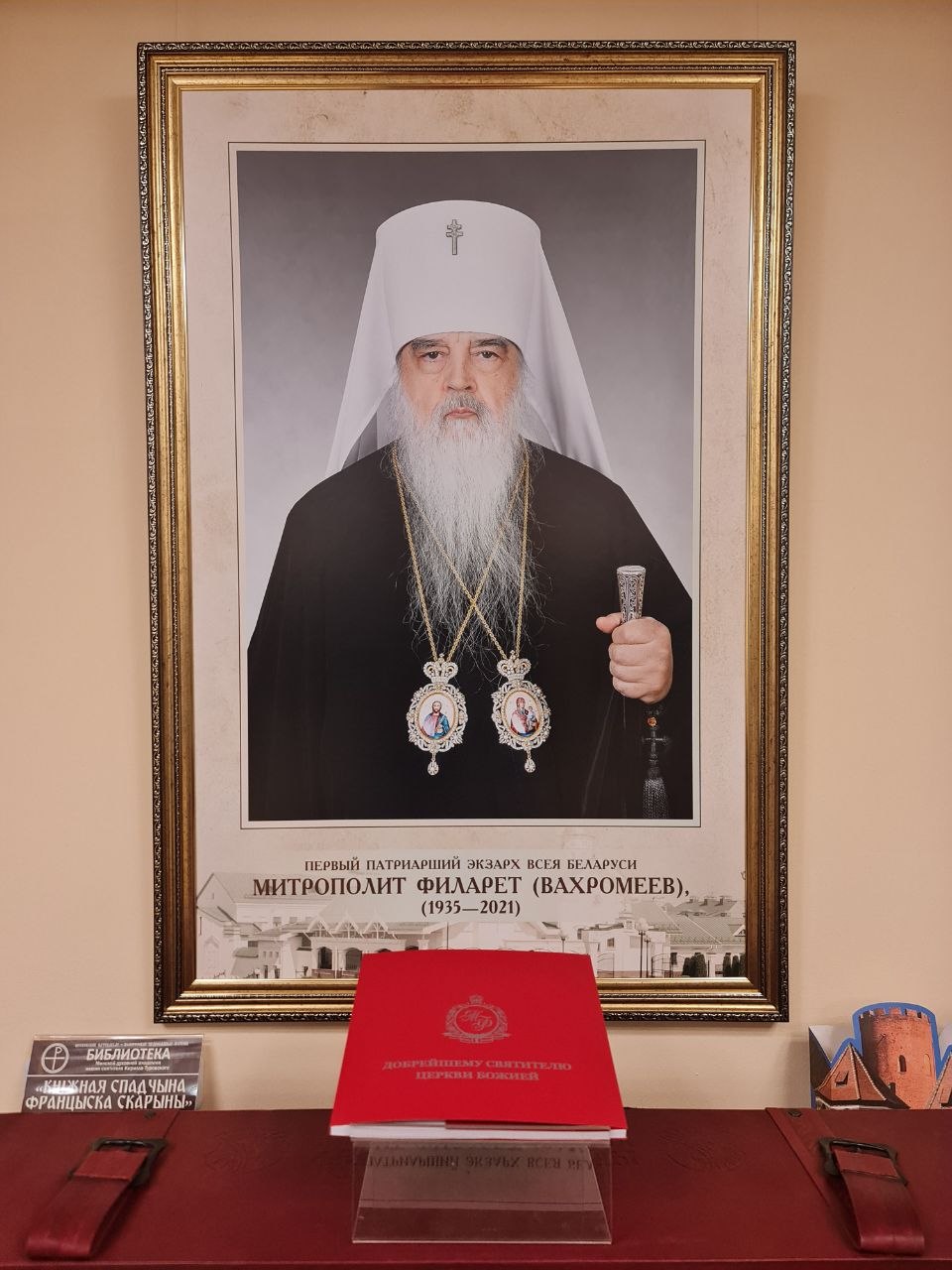 Мемориальная библиотека митрополита Филарета (Вахромеева), первого Патриаршего Экзарха всея Беларуси начала создаваться по благословению митрополита Минского и Заславского Вениамина, Патриаршего Экзарха всея Беларуси, сразу после блаженной кончины Владыки и на сегодняшний день насчитывает около 10000 единиц хранения. В составе фонда Мемориальной библиотеки сформировано несколько коллекций, среди которых особую значимость имеет коллекция с дарственными надписями митрополиту Филарету, насчитывающая около 1000 наименований.