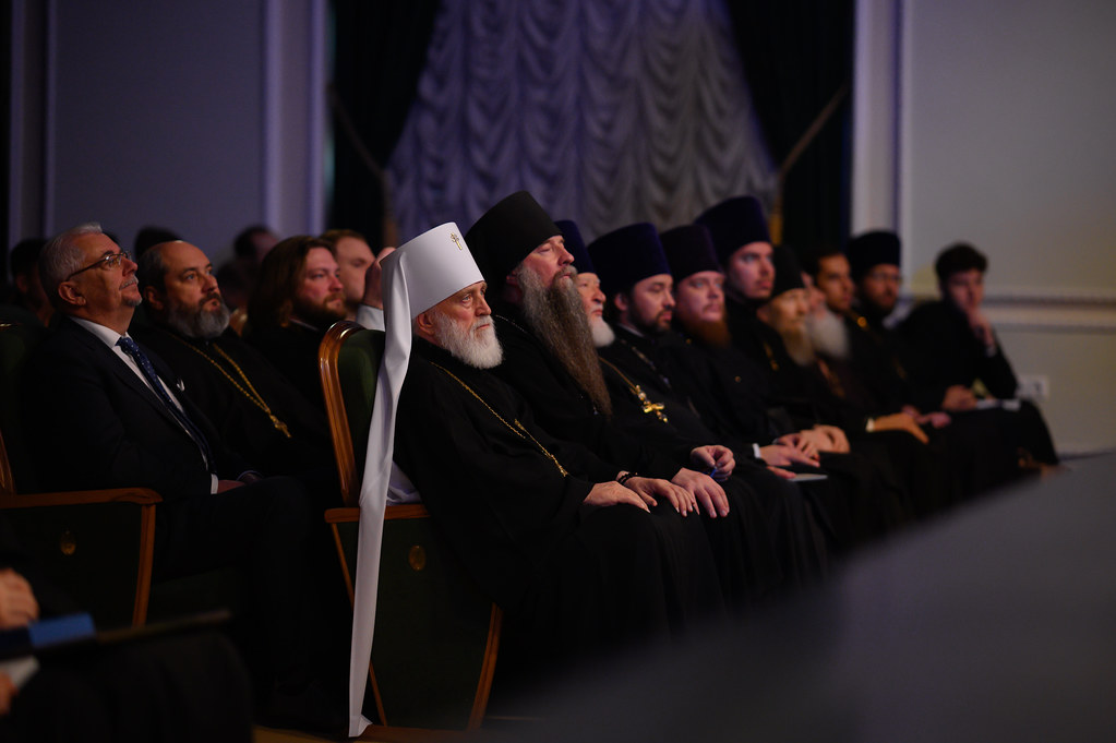 Далее митрополит Крутицкий и Коломенский Павел огласил поздравительное обращение Святейшего Патриарха Московского и всея Руси Кирилла, добавив и от себя слова напутствия учащим и учащимся.